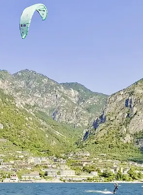 Der nördliche Gardasee rund um Malcesine bietet ideale Bedingungen für Kitekurse. Zuverlässige thermische Winde sorgen für planbare Sessions und das großes Kitegebiet bietet dir viel Platz auf dem Wasser.