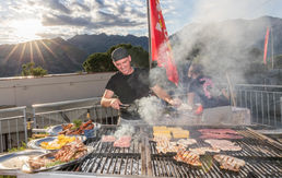 Nach der Session trifft man sich im Restaurant oder am Seeufer, wo man mit leckerem Essen und Getränken übers Kiten spricht.